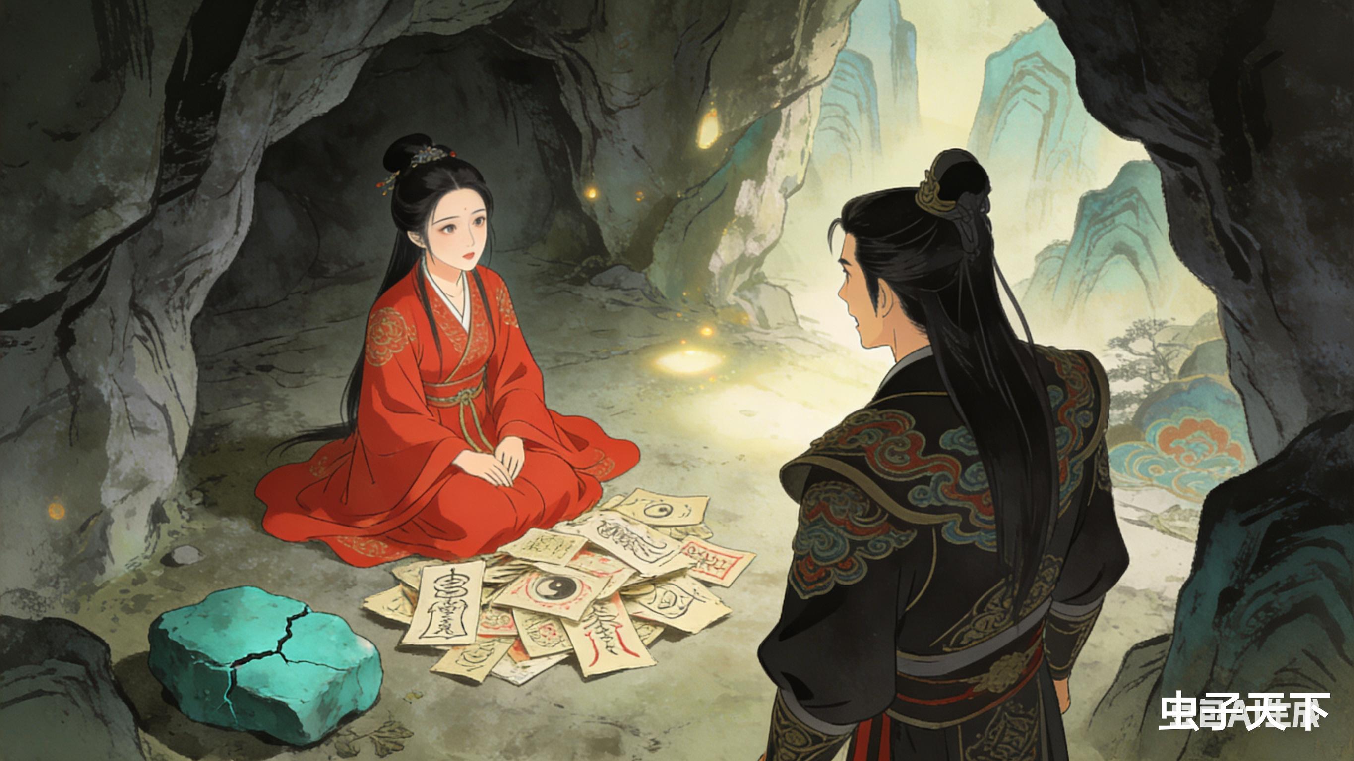 哮天犬对着一处山洞狂吠,洞内传来姑娘的声音:“真君若肯听我一言,便知我并非作恶。”