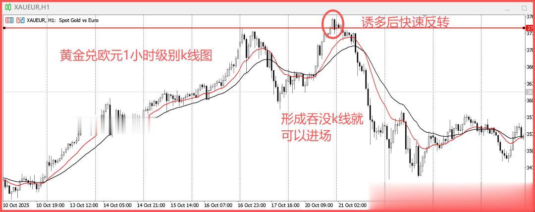 图中是黄金兑欧元1小时级别的K线图。