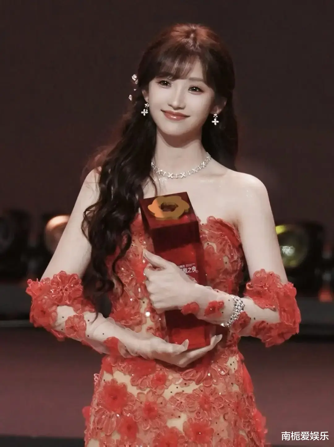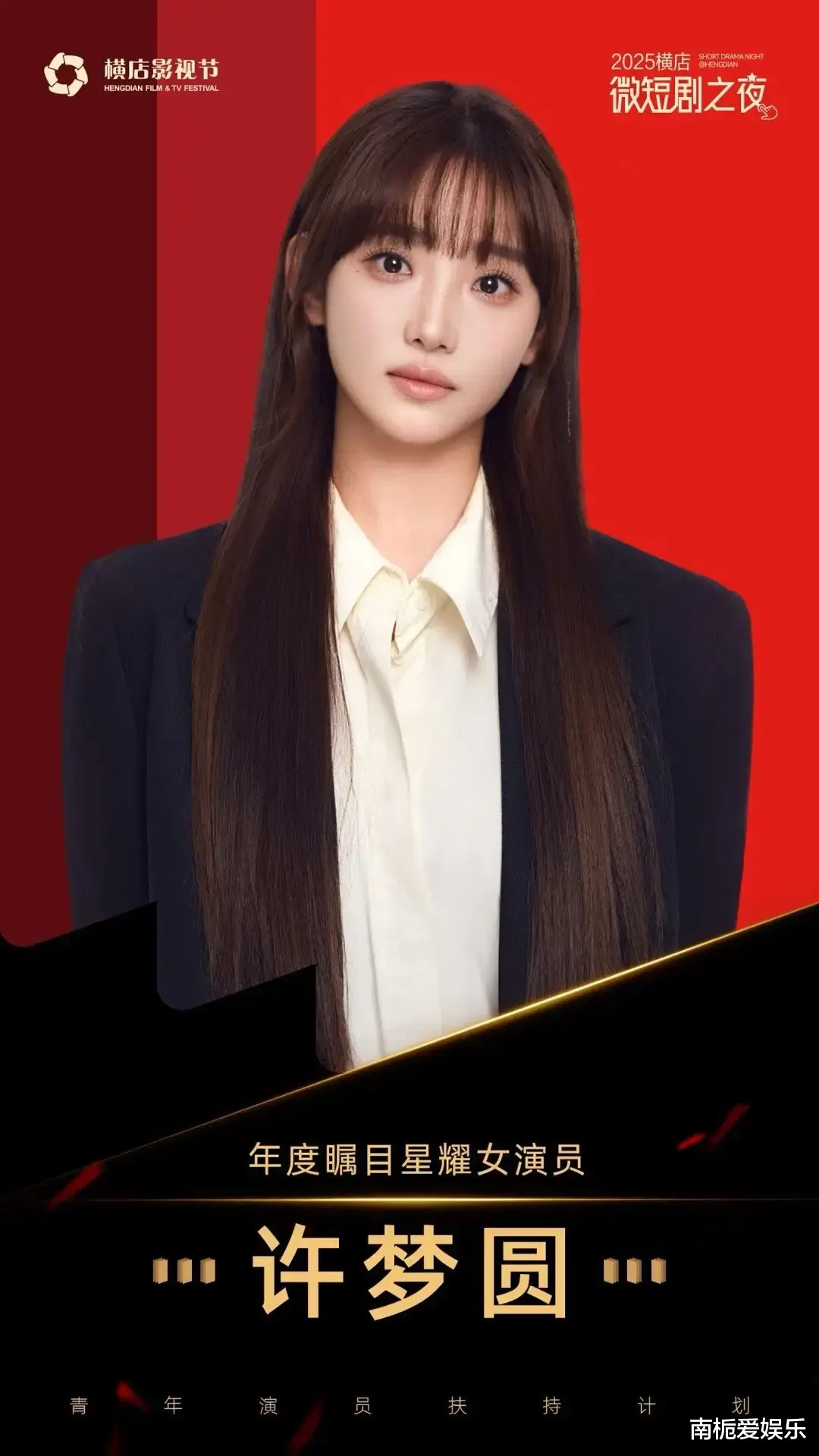 当晚的高潮,无疑是许梦圆斩获“年度瞩目星耀女演员”奖项的时刻。当她的名字被念出,全场掌声雷动,她眼含热泪登台,声音微颤却坚定:“这条路不容易,但我从未放弃。”这一刻,红毯上的惊艳表现与专业奖项的认可完美互证,她的成功不再是流量的偶然,而是坚持与蜕变的必然。从长剧赛道转型微短剧,她曾遭遇质疑与低估,但正是这些磨砺,让她在今晚的舞台上绽放出最耀眼的光芒。