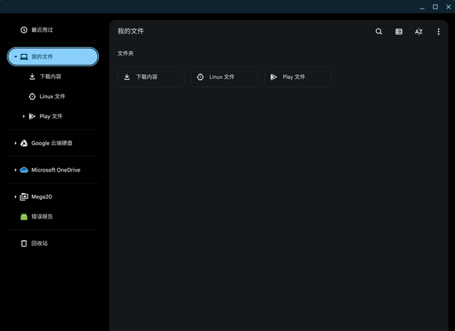 ChromeOS 的文件 APP 和传统 PC 不太一样,打开之后直接只有一个“下载内容”,在安装了安卓子系统和 Linux 容器之后才会出现 Play 文件以及 Linux 文件。我这里还连接了日常使用的 OneDrive,以及局域网的一台 NAS。