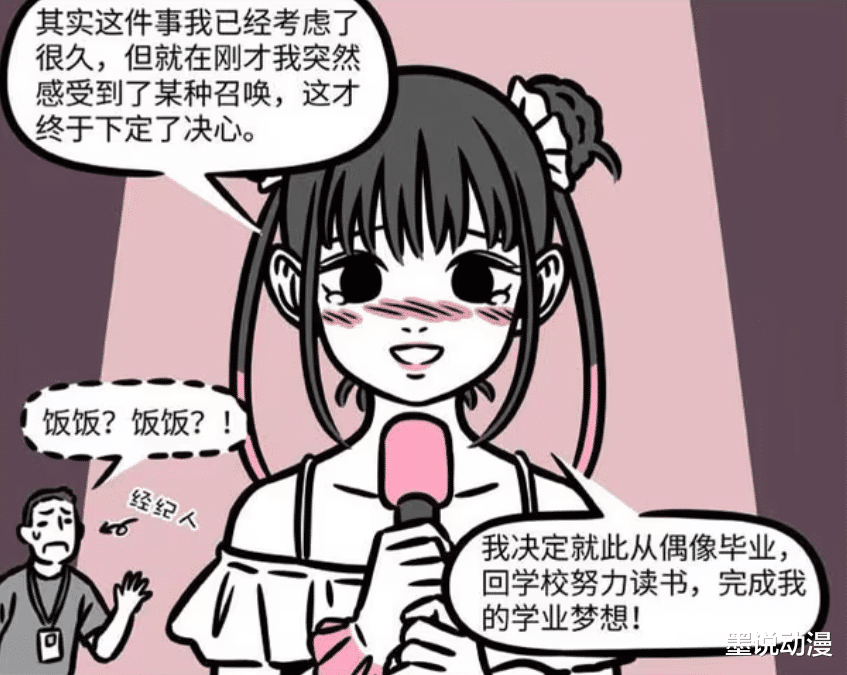 饭饭表示,这件事已经考虑了很久,直到刚才才感受到了某种召唤,这才让她下定决心。饭饭决定退圈,决定从偶像毕业,要回归学校,要去好好读书,完成自己的学业梦想。连饭饭的经纪人都不知道,饭饭为何突然做出这个决定。