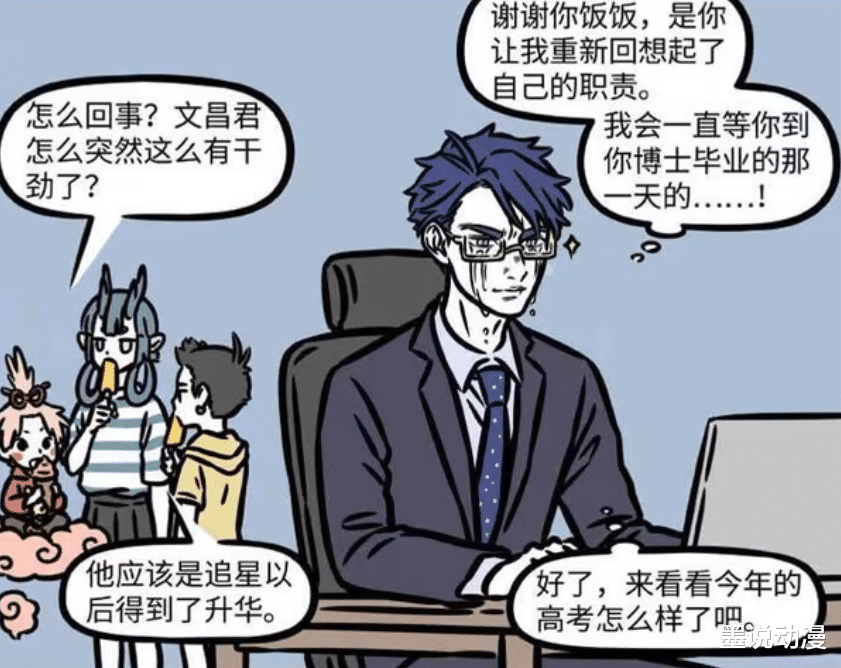 文昌帝君最终重回岗位,想起了自己的职责。文昌帝君还决定要等到饭饭到博士毕业那一天,现在就开始看今年的高考。月老都不知道文昌帝君为何突然有干劲,只有龙女和哪吒知道他从追星过程中获得升华。