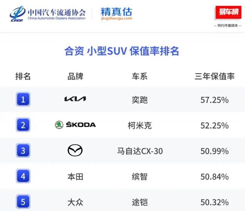 近日,中国汽车流通协会联合汽车数据服务平台精真估发布了《2025年度中国汽车保值率研究报告》,起亚奕跑三年保值率依然高达57.25%,稳居合资品牌第一、全系车型第二,进一步验证了消费者对其品质的认可与信赖。