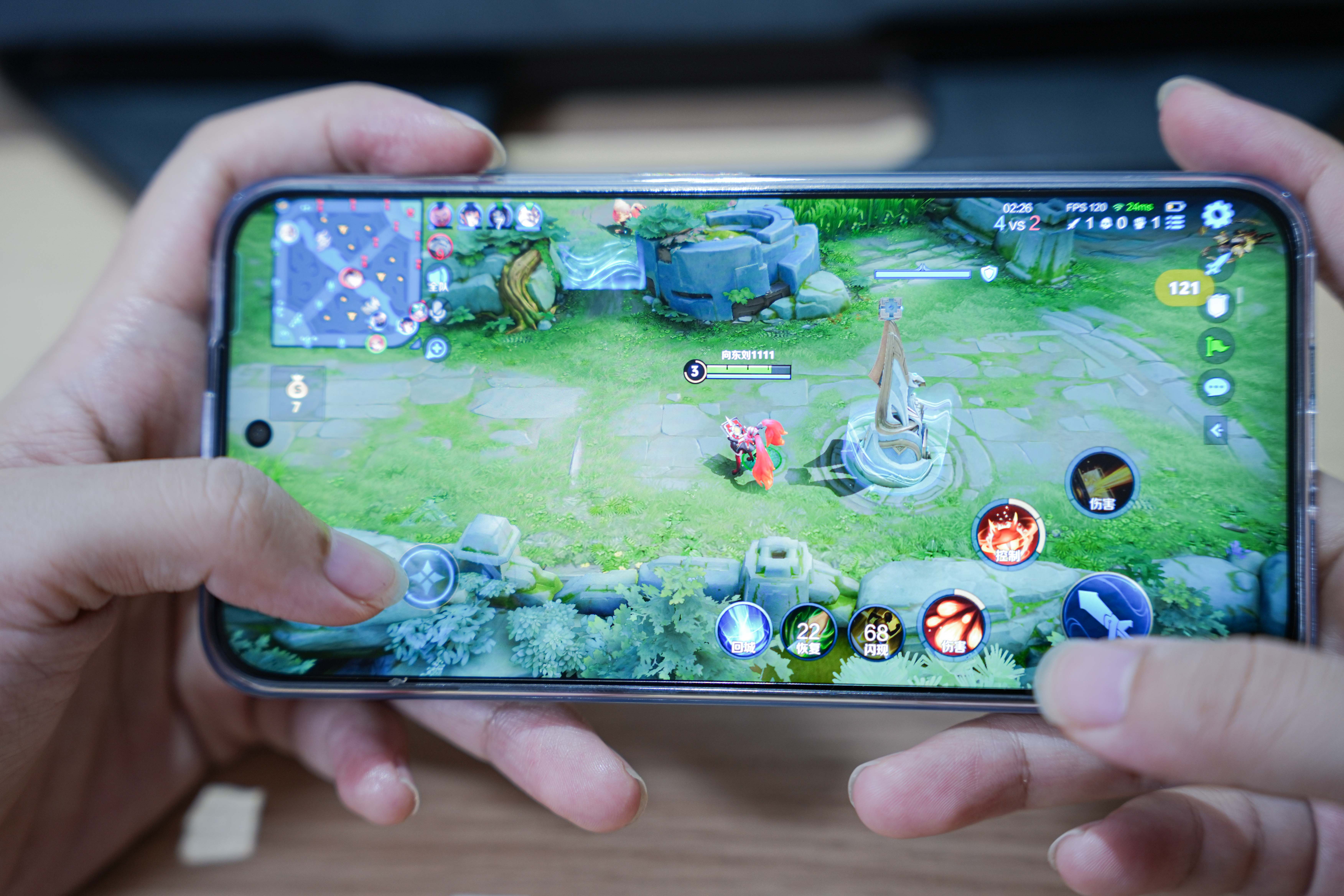 来看看实战环节,室温条件下(27℃),王者荣耀中开启全特效、最高帧率、最高画质,荣耀400 Pro的游戏表现十分的丝滑,即使是在团战中瞬时帧率也有120帧,这背后离不开第三代骁龙8 Adreno GPU强大的图形渲染能力和稳定的性能输出。