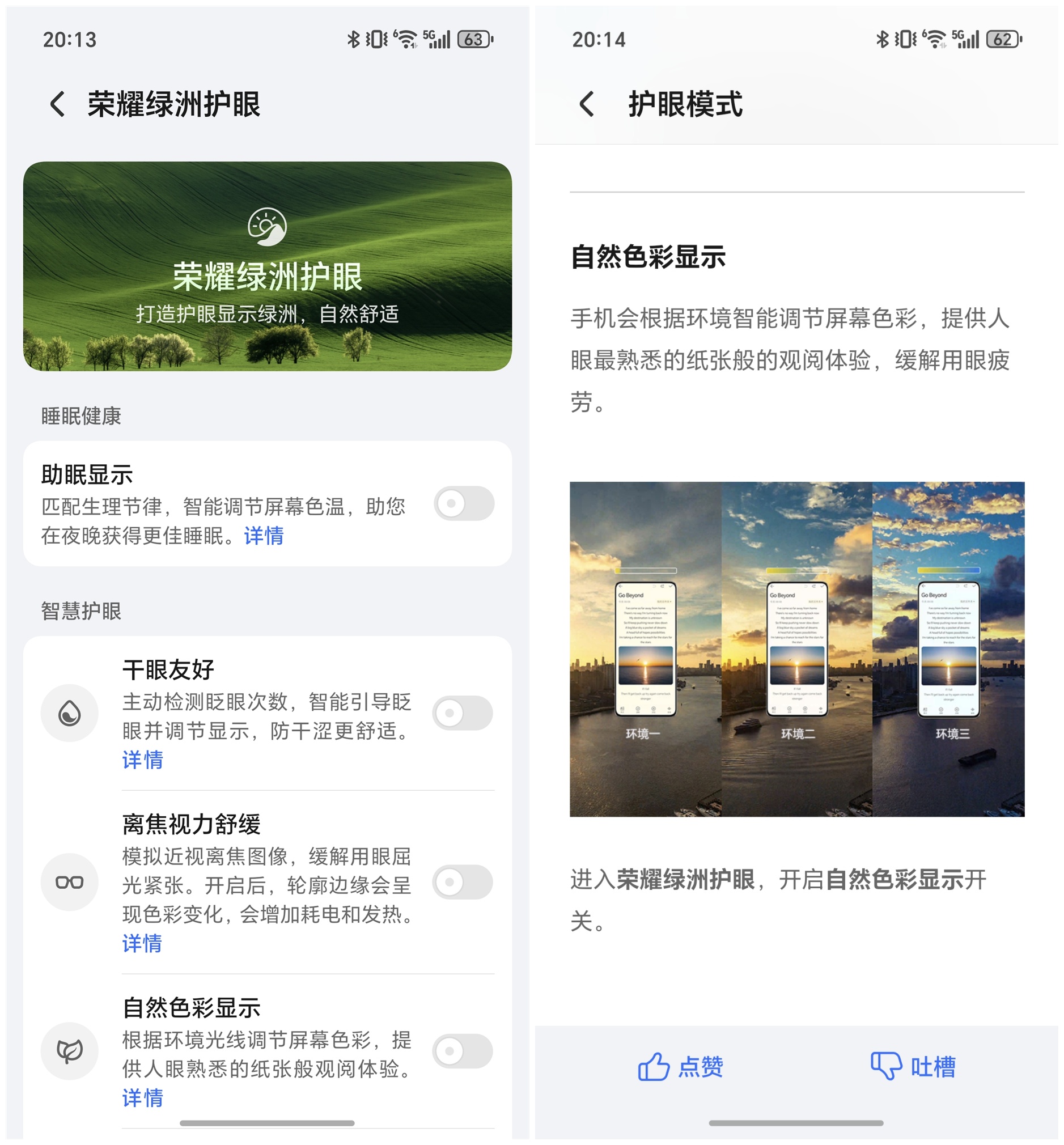 此外,荣耀400 Pro配备了多项护眼功能,包括AI离焦护眼技术、干眼友好模式和极暗模式。这些功能可根据环境光线自动调节屏幕亮度和色温,有效降低视觉疲劳。