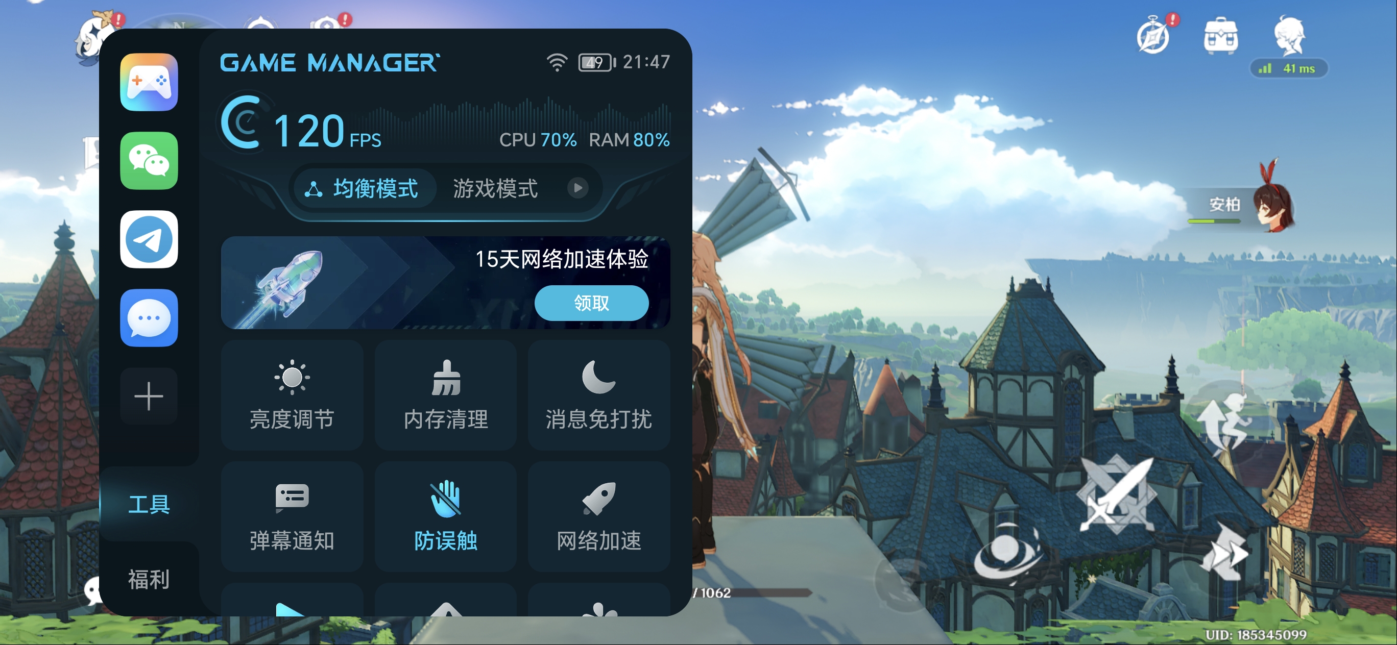 运行原神最高画质60fps模式下,也能持续稳定保持60帧,未出现卡顿或帧率波动,并且荣耀400 Pro具备超帧、超分及稳帧功能,可将原神提升至120fps运行。