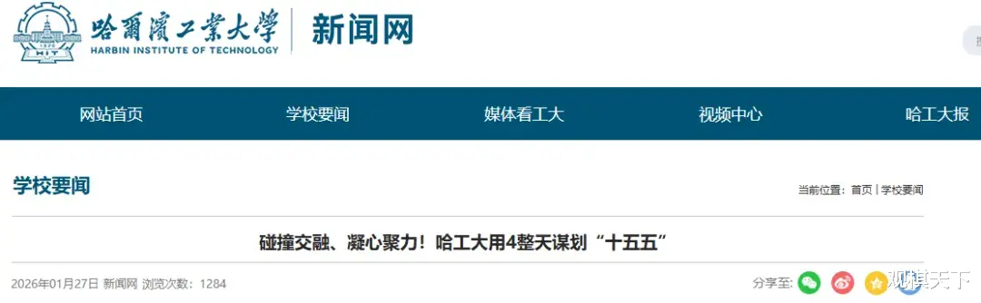 就在1月27号,哈工大花了整整四天开务虚会, 为的就是谋划十五五发展, 这股劲头在东北高校里确实少见。