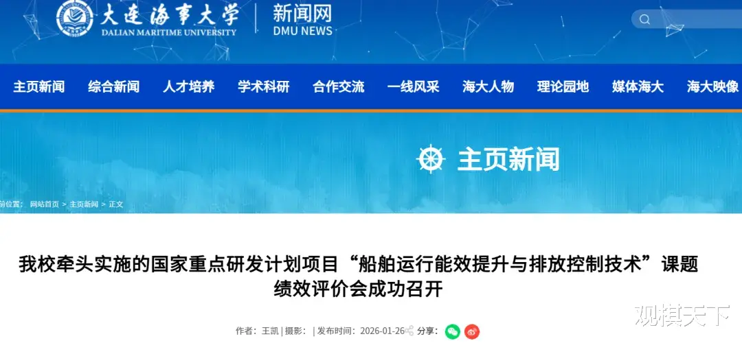 大连海事大学是第14, 全国排在第129位, 就在1月16日,该校牵头的一个国家重点研发项目, 即船舶运行能效提升与排放控制技术的课题绩效评价会举行, 副校长曾庆成也参加了会议。