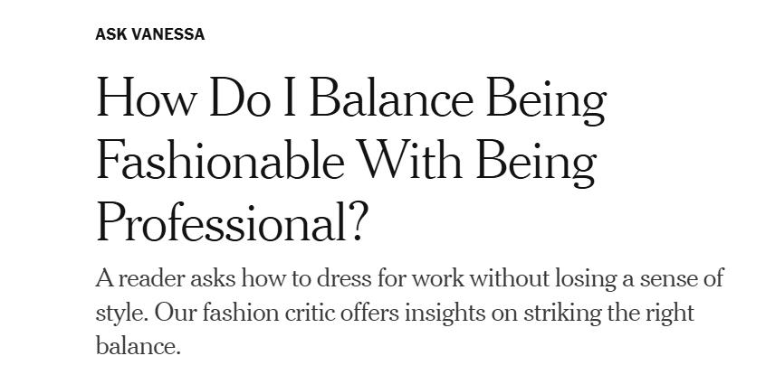 过去一年里,“banal” 一词在《纽约时报》网站的 195 篇文章中出现过,其中包括 11 月 25 日瓦妮莎・弗里德曼(Vanessa Friedman)的《如何平衡时尚感与职业性?》一文: