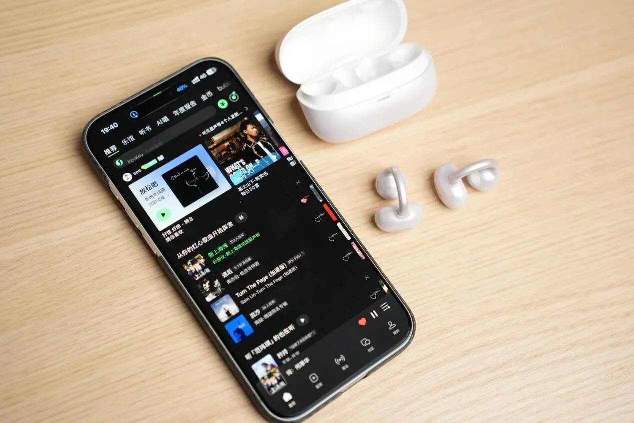 在音质表现方面,这款耳机整体调音偏向柔和耐听的风格。12mm双磁路动圈单元带来了不错的解析能力,在播放轻音乐、人声类歌曲或播客内容时,声音细节表现比较清晰,人声位置自然,不会出现明显的刺耳感。不过整体音量调校相对保守,在地铁、公交或集市等嘈杂环境中使用时,声音存在感会稍微弱一些,需要适当提高音量。