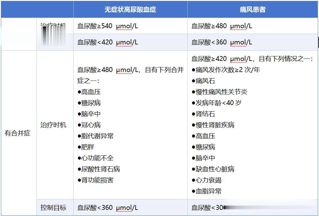 表3 降尿酸药物治疗时机和血尿酸控制目标值