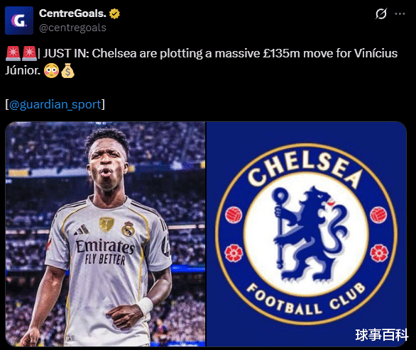 马雷斯卡下课后,切尔西立刻在伊蒂哈德球场1-1逼平曼城,恩佐·费尔南德斯第95分钟打入绝平进球。周一,多家媒体称蓝军正考虑一笔可能打破英国转会纪录的交易。今年夏窗,利物浦先后以1.16亿英镑签下维尔茨、1.25亿英镑引进伊萨克,两度刷新英国的转会费纪录。如今,《卫报》透露,切尔西正“策划”以1.35亿英镑求购皇马边锋维尼修斯。