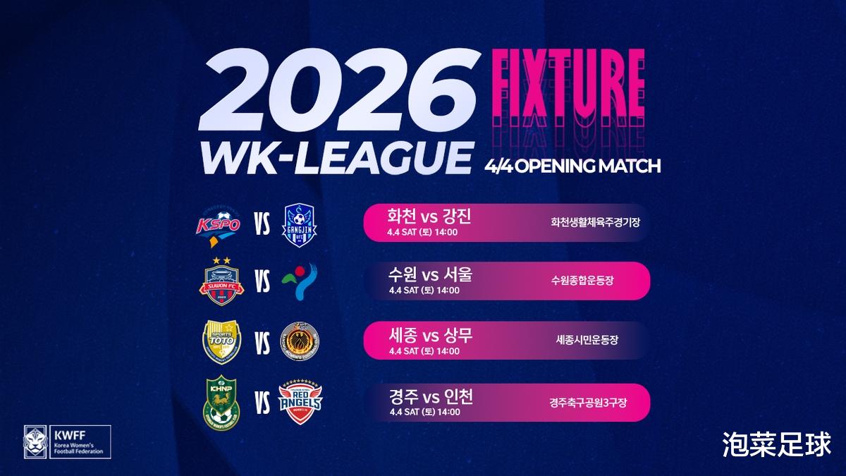 附:2026WK联赛首轮对阵(4月4日14:00【韩国时间】)