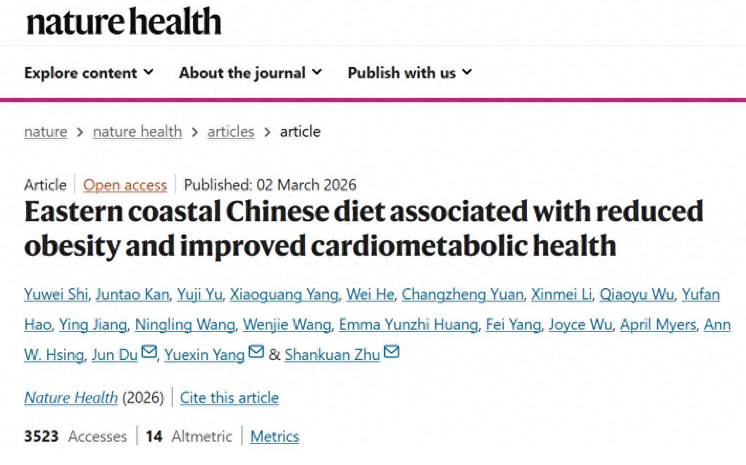 近日,浙江大学团队联合中国疾病预防控制中心等机构,在《自然·健康》(Nature Health)杂志发布了一项研究结果,通过基于中国超万人的队列数据,首次明确了一套扎根中国饮食传统、有充分科学证据的健康膳食模式——EastDiet(东方膳食)。