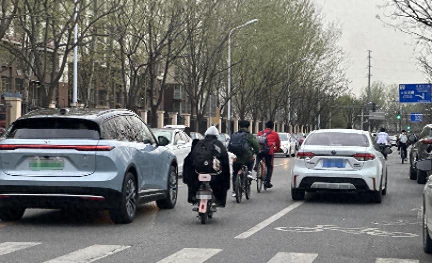 最普遍的情况是车辆违停在非机动车道上,导致路侧双排停车现象。多数违停车辆会在7时30分前驶离,但部分车辆8时左右才开走。记者发现,有一辆白色丰田车连续3天违停在非机动车道上。4月1日7时51分,记者等到了前来挪车的车主。当被问及为什么占用非机动车道违停时,司机回复一句“没地儿停”便开车驶离。