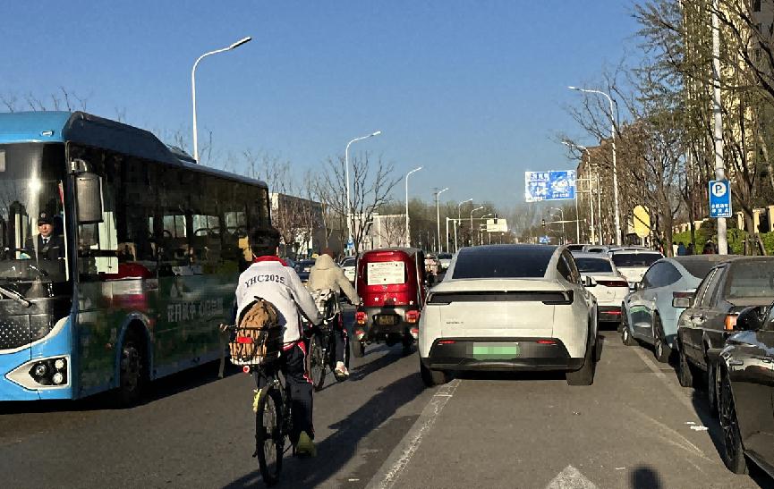 近日,家住通州区的杨女士向有事儿@新京报反映,通州区京洲北二街每天早高峰时段都有车辆违停,占用非机动车道,造成路侧双排停车,学生们被迫挤到机动车道上骑行,存在安全隐患。
