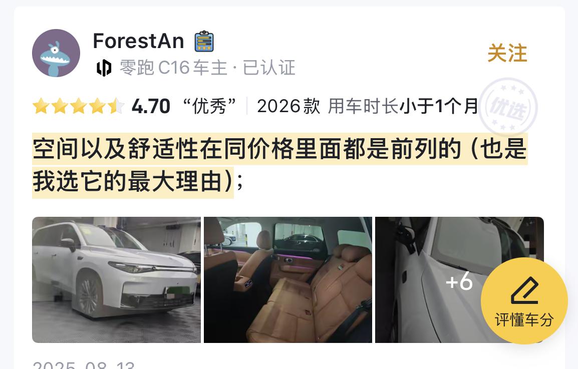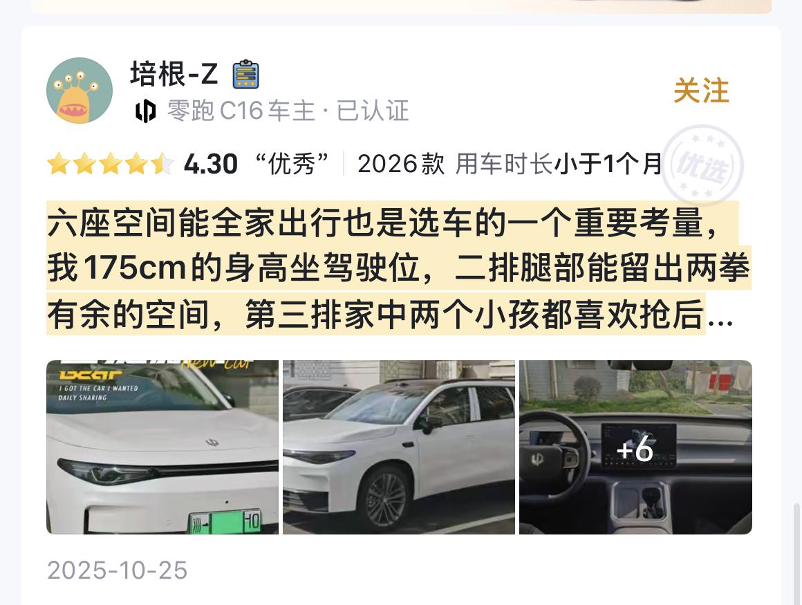 销量高、口碑好,这车主体验能差到哪去?一台车来说,买车不是开始,售后才是开始!买了 C16,你能直接享受“四项终身”:终身质保、终身免费基础流量、终身免费道路救援、终身免费软件升级,这几项算下来,真的是实打实的省心又省钱。话说得再漂亮、宣传唱得再响,都不如车本身过硬。咱们也不整虚的了,从外观、内饰、这些实打实的地方,一个个扒开来看一看——零跑 C16 到底好在哪儿!