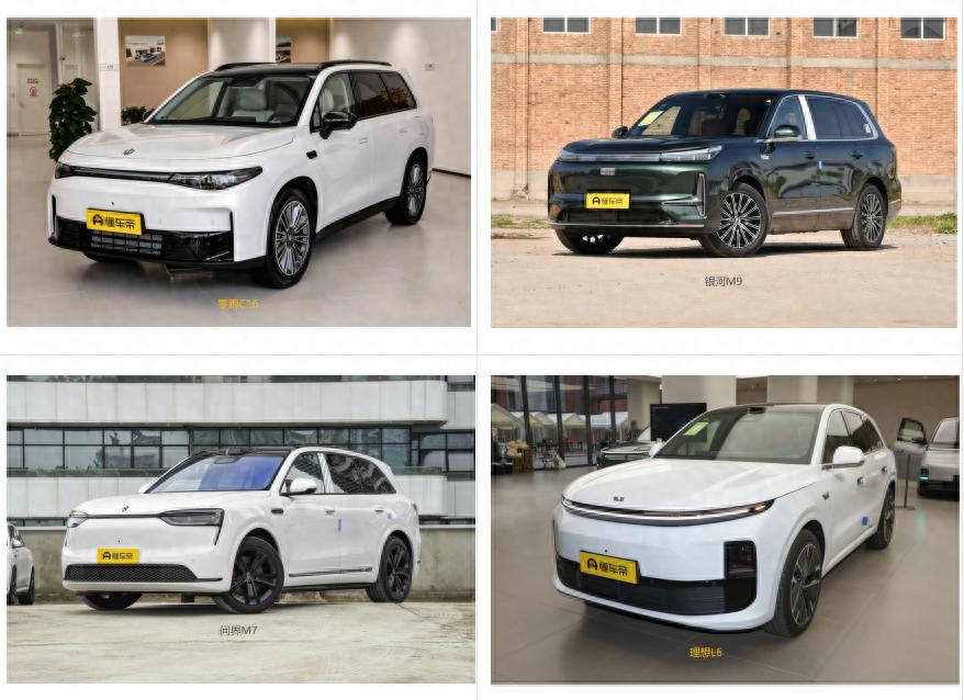 咱们找了几台比零跑16贵的!20万左右的车来对比看看!银河 M9 走的是稳重路线,整体设计偏成熟。虽然不算特别惊艳,但在大尺寸 SUV 中风格耐看、气场足,对喜欢传统审美的消费者非常友好。视觉上更沉稳,对商务接待也很合适。理想 L6 的外形相比 C16 更偏商务感,大气而稳重,同时又比 M9 更现代。品牌辨识度高。问界 M7 的外观设计偏豪华 SUV 路线,线条硬朗、有力量感,整体简洁大气。豪华感比较突出,车漆、灯组、腰线细节很讲究。但对比下来,你会发现每一台车都有自己的审美风格和气质,而零跑C16之所以能脱颖而出,是因为它把年轻、时尚、动感和实用性结合得非常到位——既能满足年轻人的审美,又能兼顾家庭出行的需求。如果你想要一台看着年轻、开着体面、坐着舒服、空间又足够灵活的车,C16确实是这四台里相对均衡、也是容易让人“一眼心动”的选择。
