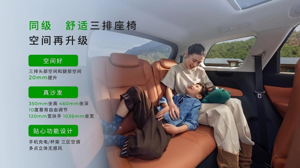 第三排座椅设计得也相当不错,适合全家出行。带着家人去自驾游时,大家坐在车内都觉得非常舒适,后排孩子玩得很开心,空间大,座椅柔软,长途旅行也不会感到疲劳。车内的空间给人一种“家”的感觉。即便是长时间坐在车里,也不会觉得憋闷,后排座椅调节起来也非常方便。