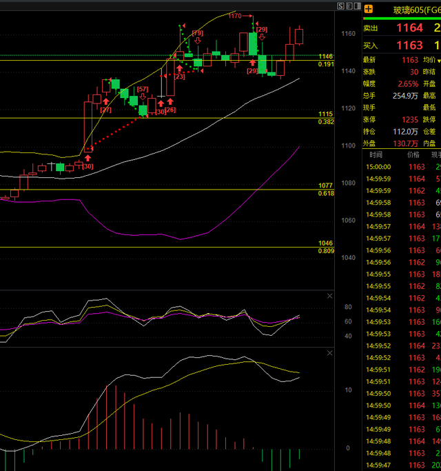 技术指标:今日玻璃跌破近三个月三角形收敛区间;夜盘预计延续震荡整理,消化日盘跌幅。价格运行于20日线下方,短期偏空趋势明显,但超跌后存在技术性反弹需求。60分钟RSI降至40(中性偏弱区间),空头动能有所释放;短期依托1150元/吨形成弱支撑,反弹力度受宏观情绪限制。【操作建议】