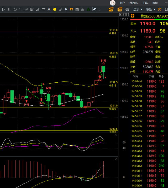 技术指标:焦煤2605日盘维持高位震荡,价格脱离前期低位震荡区间,中长期下行压力有所缓解,短期反弹动能尚未完全释放。60分钟RSI升至58(中性偏强区间),多头动能占优但未进入超买区域;5分钟级别在1210-1218区间整理,短期依托1200元/吨形成支撑,反弹力度受现货价格分化制约。