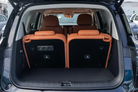 储物方面,六座满员情况下,后备箱能放两个24寸行李箱。如果第三排不坐人,放倒后能扩展到1022L,婴儿车、露营装备都能轻松装下。