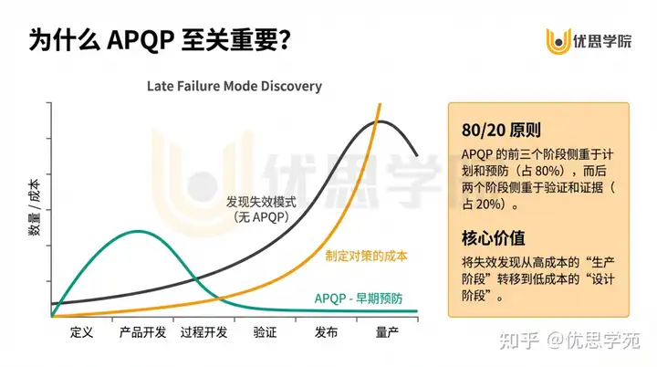 APQP 的前三个阶段侧重于计划和预防(占80%),而后两个阶段侧重于验证和证据(占20%)。这就是APQP的核心价值所在,重视预防,而非补救。