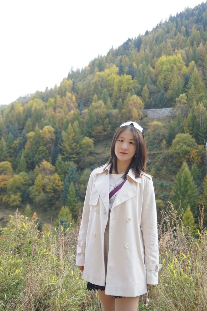 浅米色的套装,像从秋日晨雾里裁下的一段柔光。上衣的剪裁利落却含着温润的弧度,袖口轻轻收拢,似将山间清风拢在臂弯;百褶短裙的每一道折痕都透着灵秀,行走时漾起的波纹,与山涧溪流的起伏悄然应和。这柔和的米色,恰是山野秋意的底色 —— 是落叶坠地前的轻颤,是阳光穿林时的斑驳,裹在身上,人便与周遭的色彩浑然一体,仿佛本就是这片山林生长出的一部分。