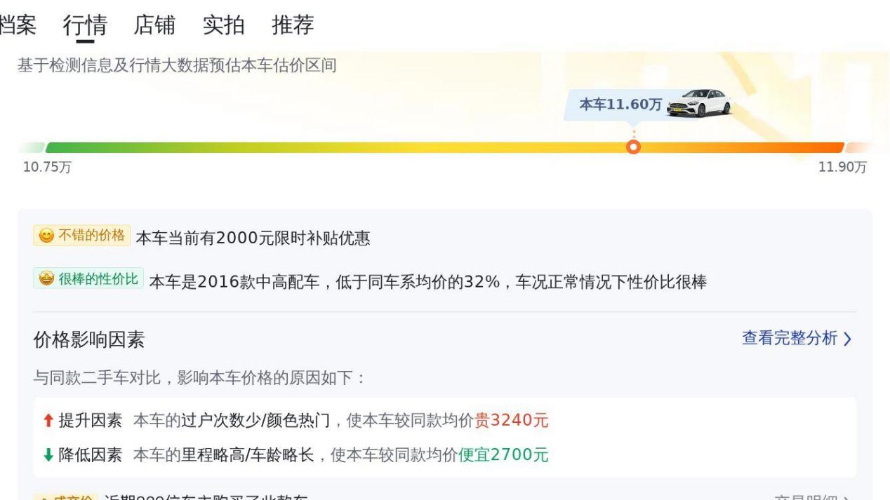 在二手车市场中,每一辆车的价格都受到多种因素的影响,例如车况、里程数、配置、市场行情等等。根据懂车帝平台的数据,2016款奔驰C200L运动型的二手车价格区间大致在10.78万至13.67万之间。这辆11.6万的报价,处于合理区间内,但仍有一定的议价空间。