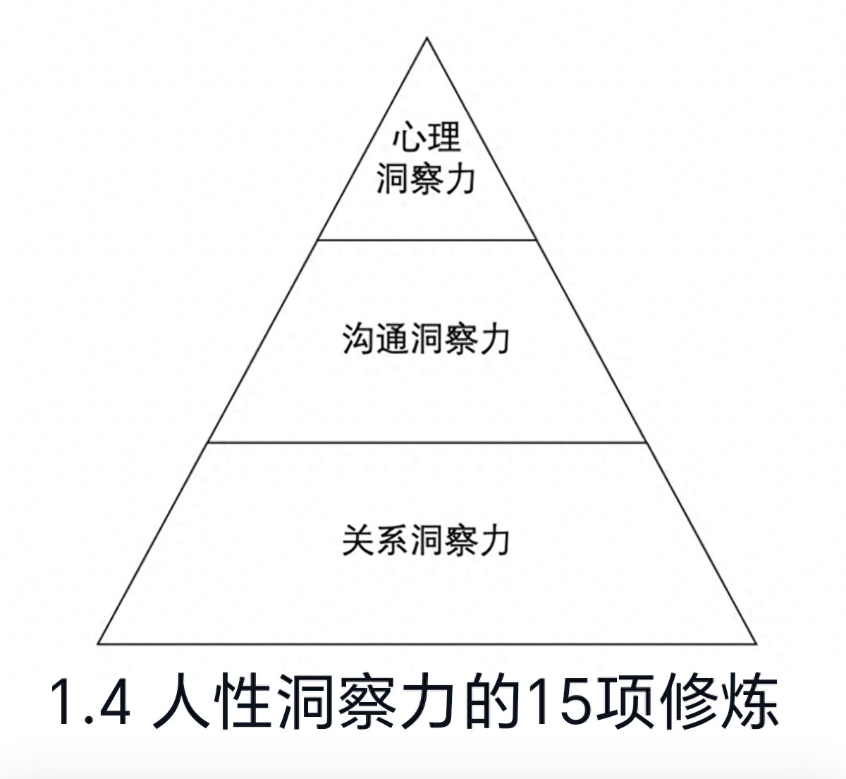 人性洞察力,包含三方面的要素:心理洞察力、沟通洞察力、关系洞察力。