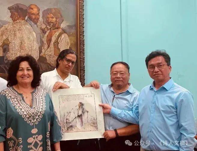 诗人周道模向古巴诗人赠送国画