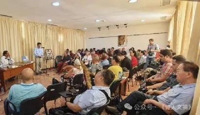 随后,北塔团长做了题为《文学既不会被摧毁也不会被打败》的主旨演讲,掀起了对话会的一个高潮。他首先特别感谢了他的老朋友、中古文化交流杰出使者、诗人、《人民日报网》记者编辑Yasef Ananda先生,感谢他为此次交流会牵线搭桥,并专程回古巴精心准备。北塔指出:中国代表团共有17位诗人、词作家和诗歌朗诵家。其规模之大,恐怕很难再有来者。这次访问交流必将在中、古诗歌文化交流史上留下美好的一笔,也将为巩固发展中古人民兄弟情谊添砖加瓦。同时他还讲到:也许古巴面临的敌人不小,文学面临的敌人更强大。海明威说,“一个人可以被摧毁,但不能被打败(A man can be destroyed but not defeated)。”古巴既不会被摧毁也不会被打败,文学更不会!!!