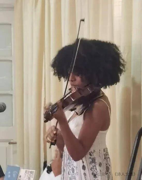 在朗诵会尾声阶段,古巴青年小提琴家尤薇娅演奏了古巴名曲《古巴倩影》,动人心魄,获得经久不息的掌声。