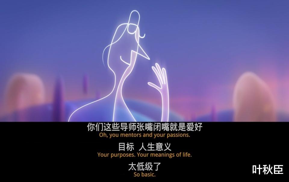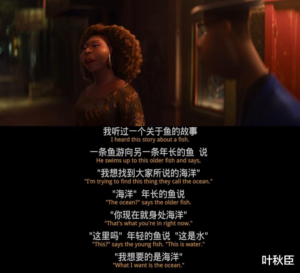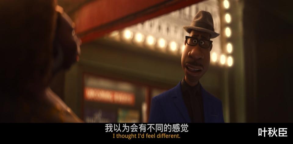 《心灵奇旅》是典型的皮克斯作品,即便没有加片头和片尾的Pixar标志和符号,单纯只给我看电影本身,叶秋臣也能做到精准识别其中的皮克斯元素,比如那句联动了《头脑特工队2》的台词“I’m not good enough”。