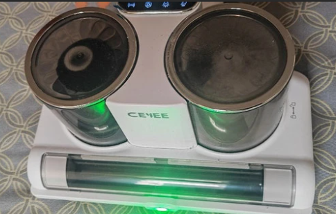 在除螨消杀体系方面,65℃热风除湿、内置LED UV-C紫外线杀菌与智能超声波物理除螨三重协同,既能高效除螨杀菌,又能快速烘干床品湿气,破坏螨虫生存环境,即便南方潮湿地区也能从容适配。同时,该机配备尘螨感知功能与LED显示,尘螨浓度直观可见,清洁更具针对性,无需盲目操作。但76dB运行噪音在静谧环境下略显存在感,在安静的环境下不够友好。0.18L尘杯容量偏小,大面积清洁需频繁倾倒,易扬灰,不足够便利。该产品适合追求高性价比、注重基础除螨与智能体验的伙伴。