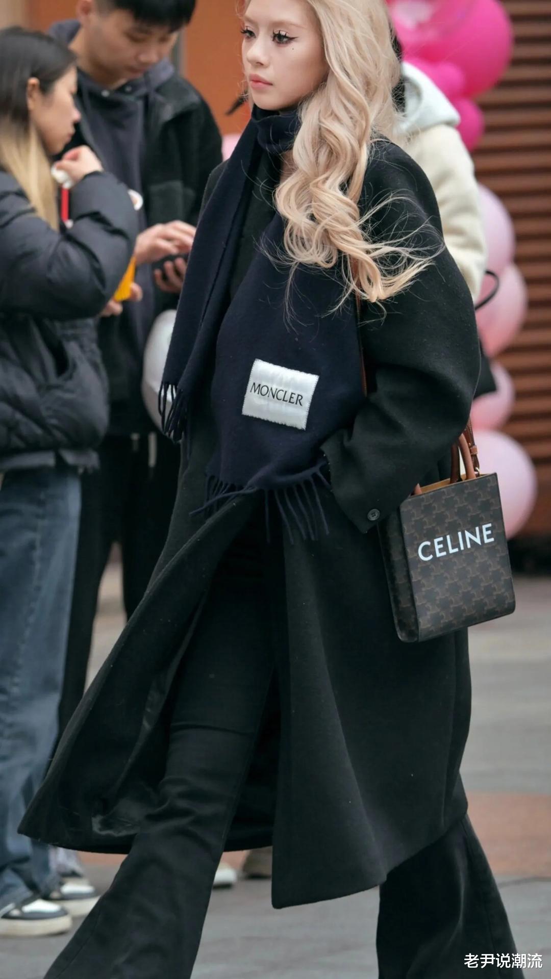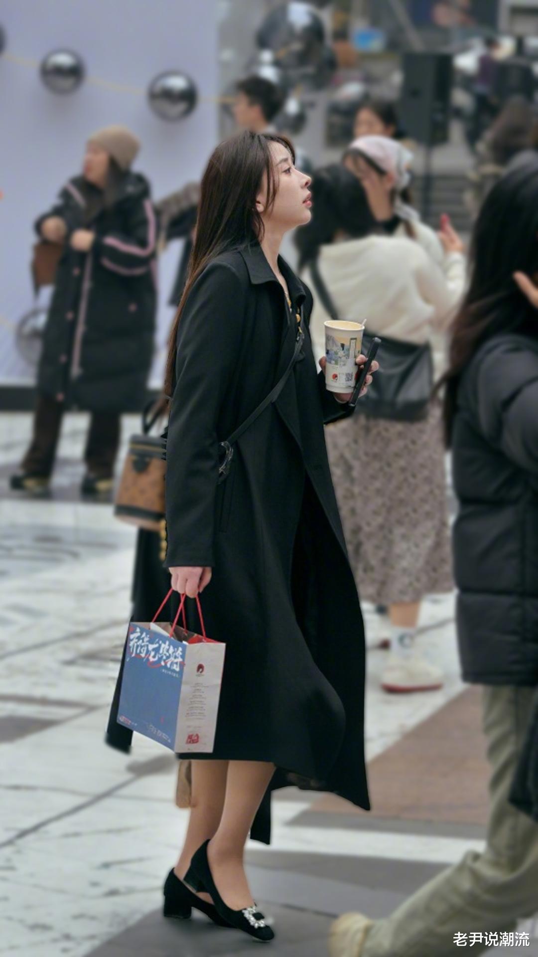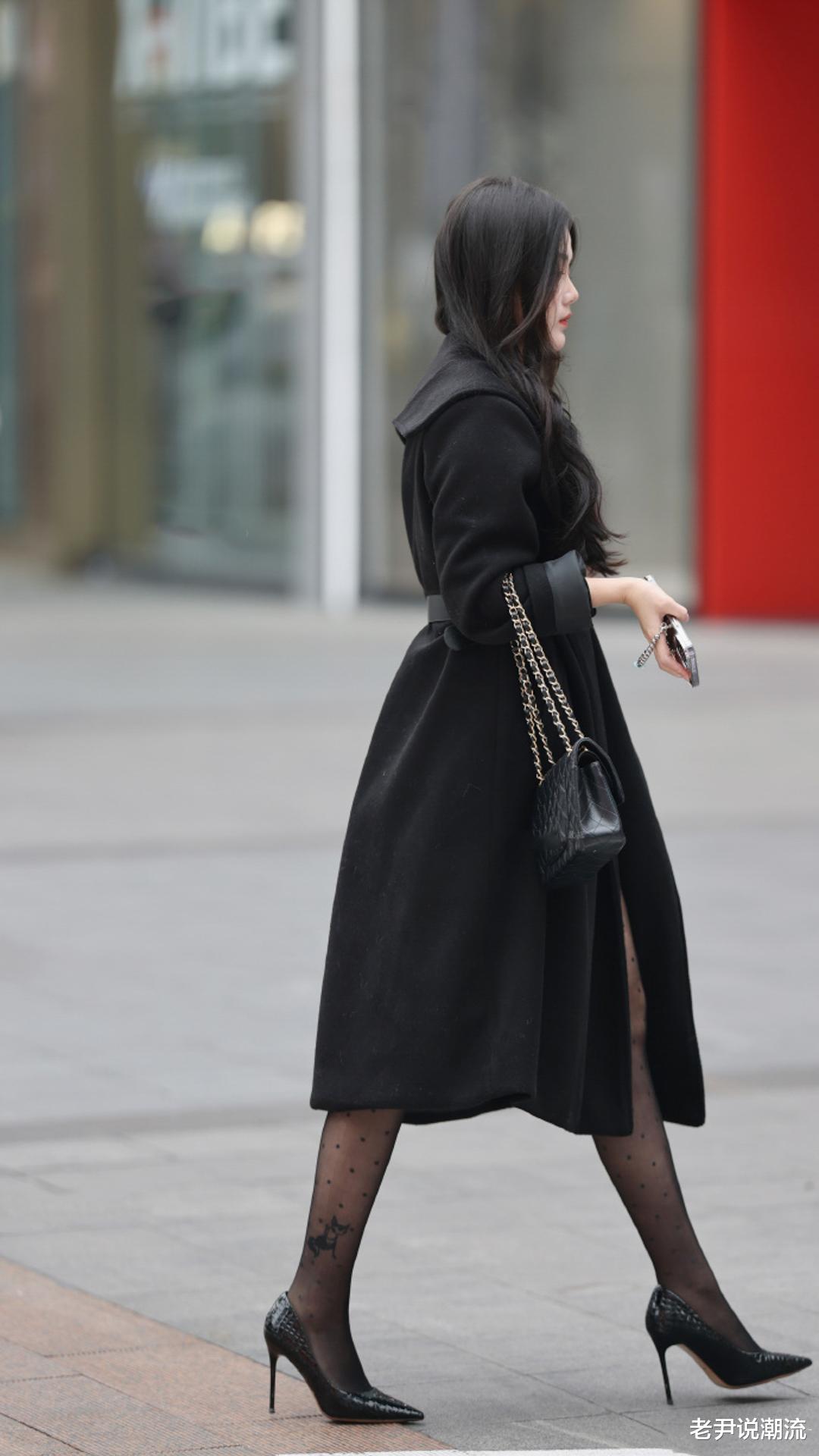 一年一度一黑衣,黑色大衣重装上阵,打造出了低调奢华大气的美女。