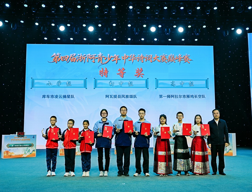 经过激烈角逐比赛最终评选出小学组、初中组、高中组特等奖各1个、一等奖各2个,二、三等奖若干。作为浙阿两地青少年文化交流的重要桥梁,4年里浙阿青少年中华诗词大赛已累计吸引45万余人次参与。