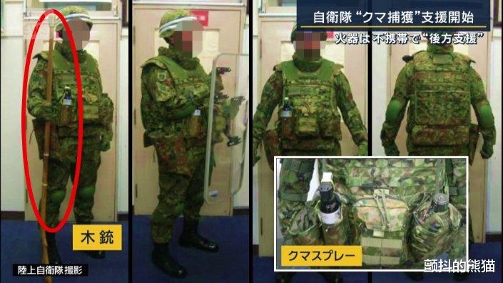据小泉防卫大臣进一步说明:“为避免未能一击致命导致伤熊狂暴化,自卫队不配备真枪实弹,而是装备木制枪。”这种木制枪是日本刺枪道比赛中使用的枪形木制器材。其目的在于通过木枪进行威慑,与熊保持安全距离,并配合驱熊喷雾等工具进行驱赶。