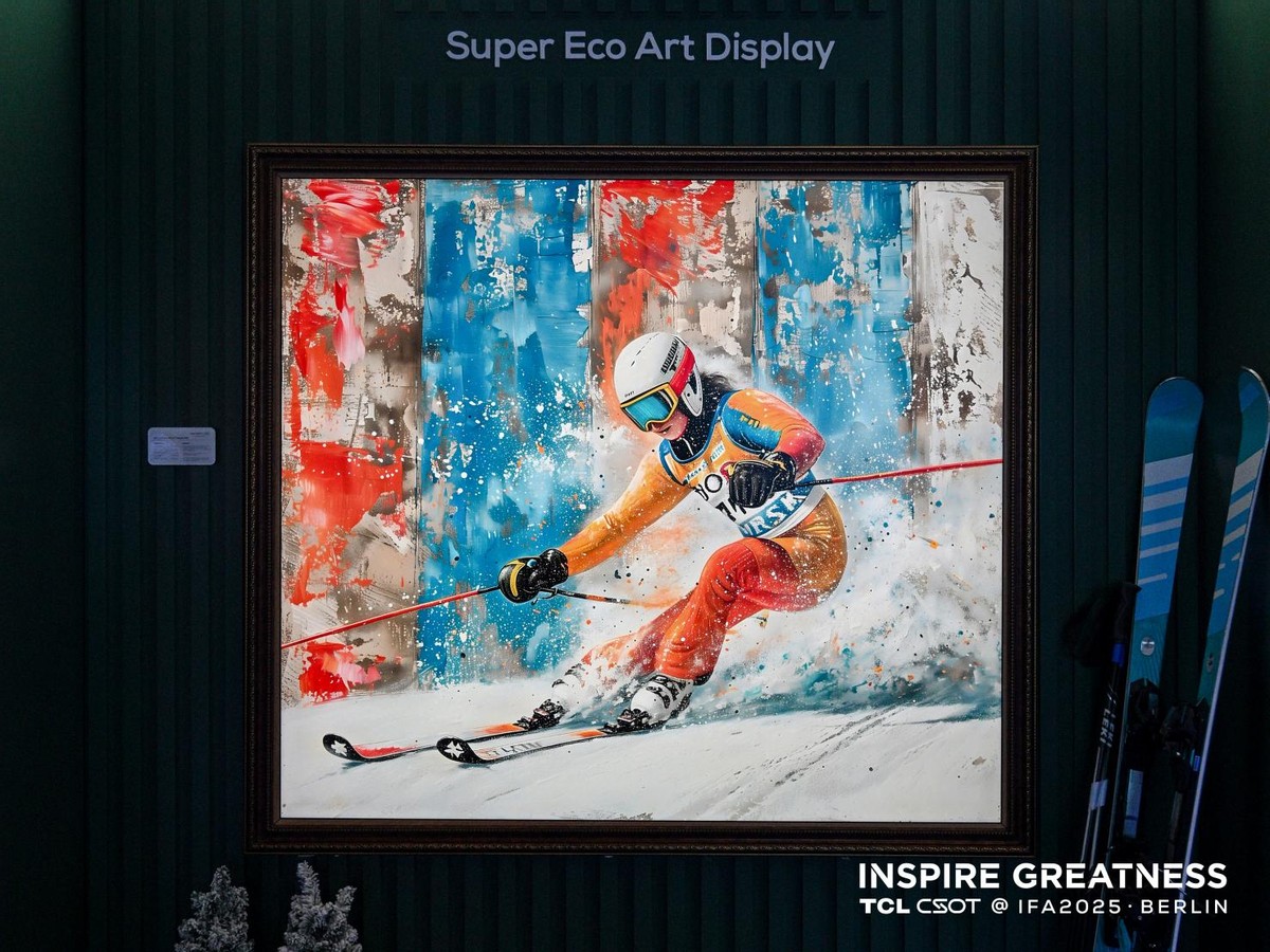 在更信赖的视觉健康方面,TCL华星推出的超低功耗8:9艺术电视显示(85")采用带雾度及低反功能的类纸POL,低反射的特性能够更有效降低电子屏幕对眼睛的刺激与视力损害。而在更永续的绿色低碳方面,这款产品具有4320×3840超高解析度,该屏通过IGZO背板技术及高穿材料方案实现OC高穿透,再结合驱动降功耗算法及背光亮度增益方案,达成欧标A级能效,平均三天仅耗一度电。同时,该屏支持静态画面10Hz超低刷新率,并且能够做到10Hz与60Hz动态切换,确保静态画面节能性的同时,也不影响动态画面流畅度。