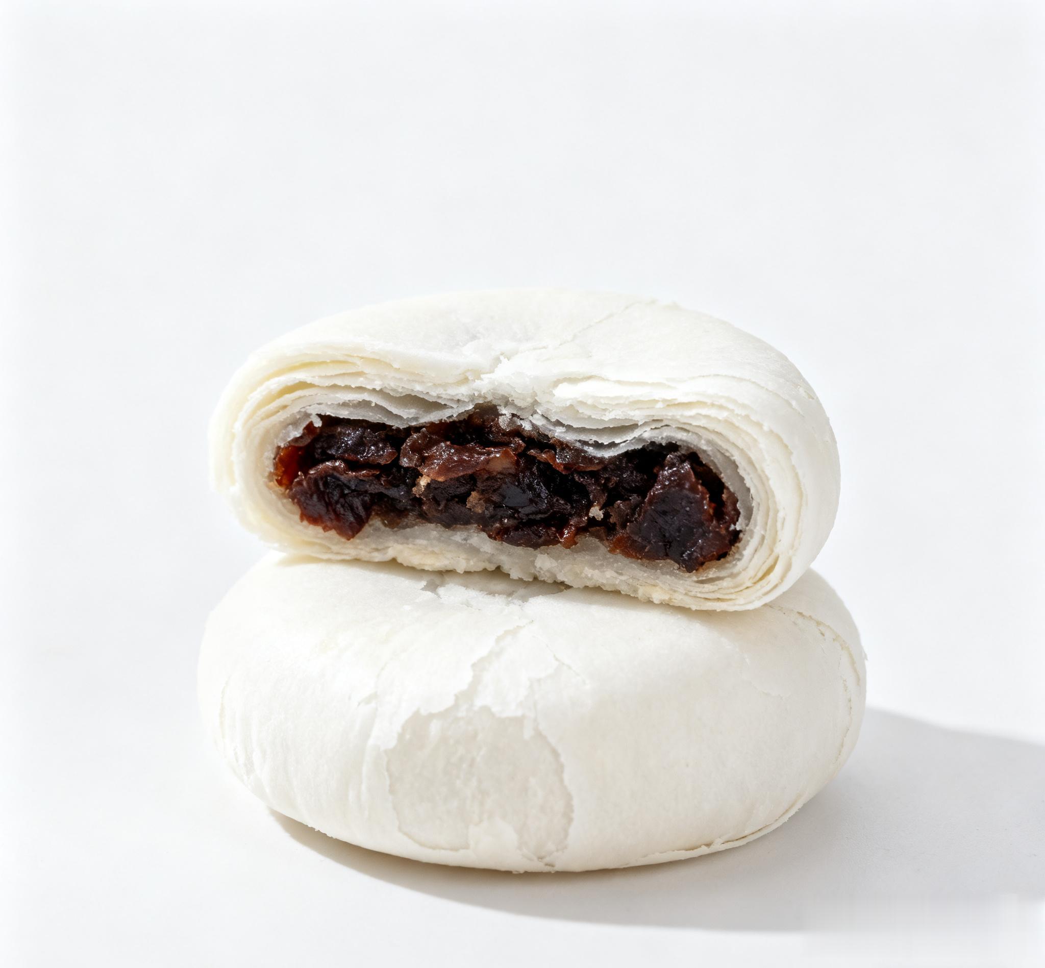 安徽的徽式月饼,长得特别秀气,白白的,小小的,跟别的月饼比,透着股质朴劲儿。它的皮是素油做的酥皮,里面的馅很特别,有用野菜(叫苦板菜)腌了之后,混着猪板油和糖做的。最经典的梅干月饼,里面是梅干菜馅,咸香口儿的,油润润的但不腻,吃着有股田野的味道。安徽的老家庭,中秋还会自己做这个月饼,一家人围着揉面、调馅,手上沾着面粉,嘴上聊着天,做出来的月饼,比买的还香。