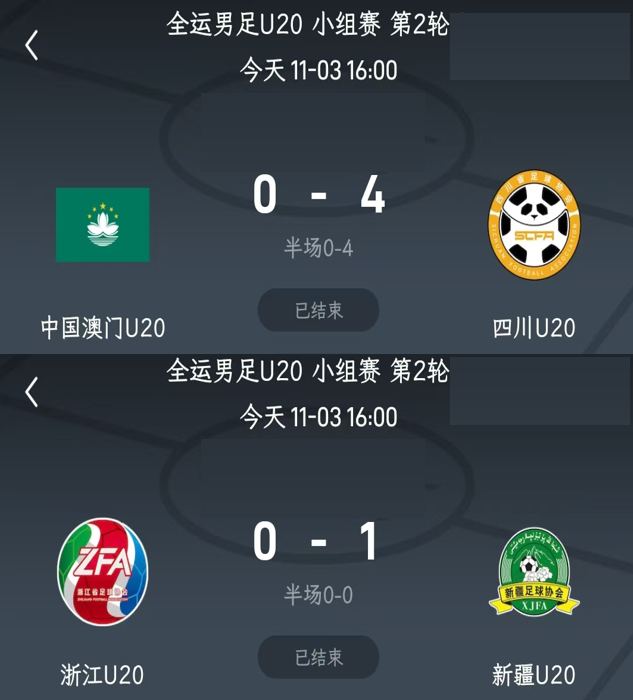 首轮比赛,四川0-1爆冷不敌福建,下半场第50分钟被对手一击制胜。而澳门则0-6惨败上海,上海队的刘诚宇帽子戏法,王一凡、刘铁城、张俊杰纷纷破门。