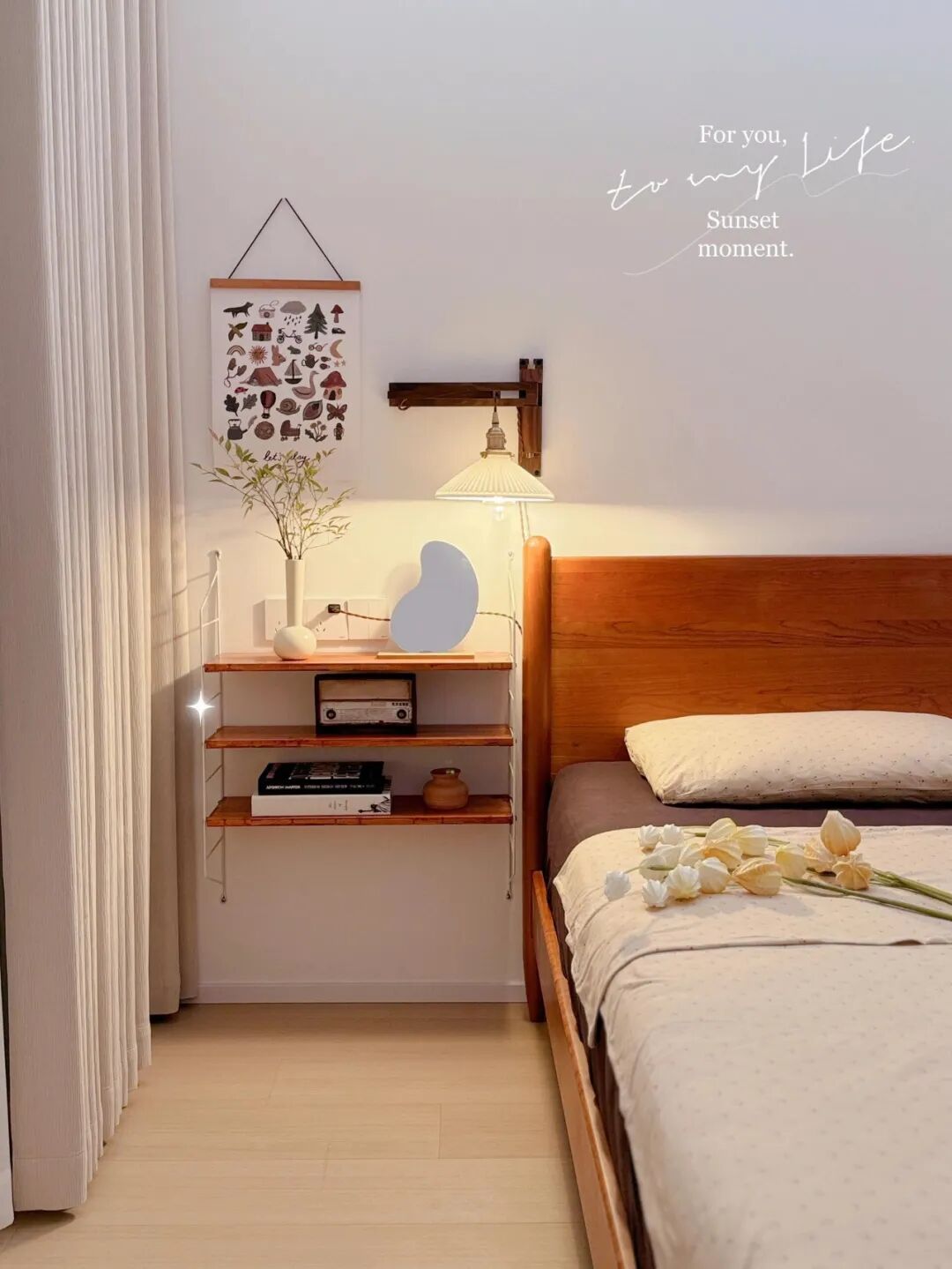 以前总觉得,床头柜是卧室的标配,放个闹钟、摆本书、搁个水杯,好像少了它不行。可现在的年轻人,装修才不要笨重的床头柜。