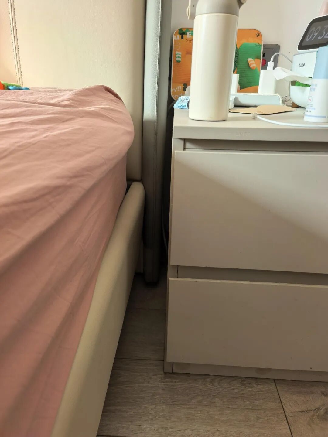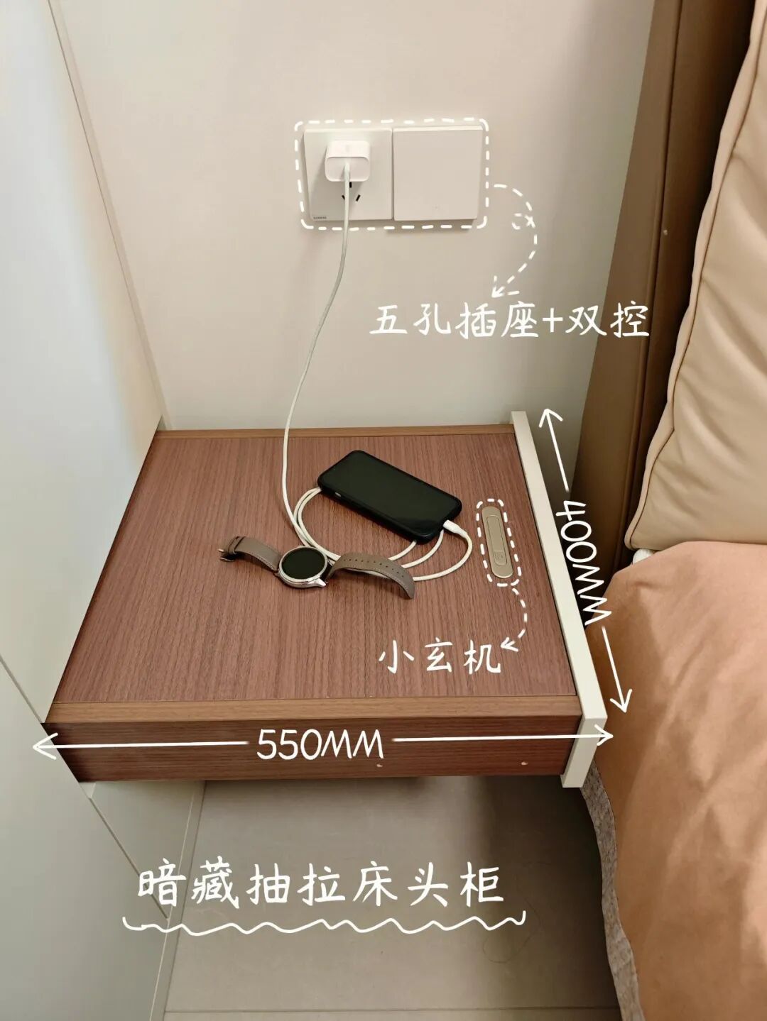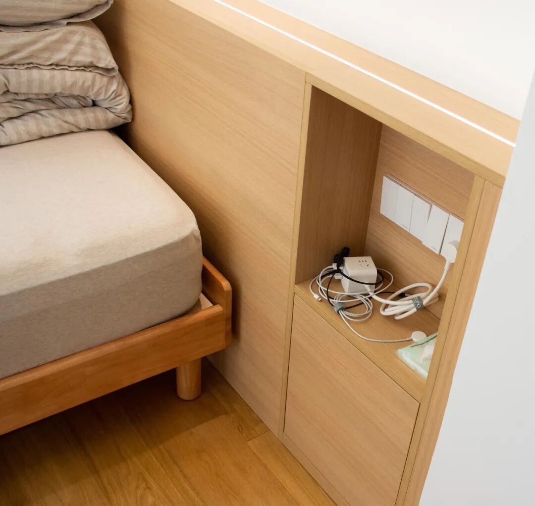 传统的床头柜,基本上就是个“摆设+杂物堆”,台面堆得乱七八糟,抽屉里面的东西一年到头也用不上几次,床和柜子之间的缝隙全是灰。