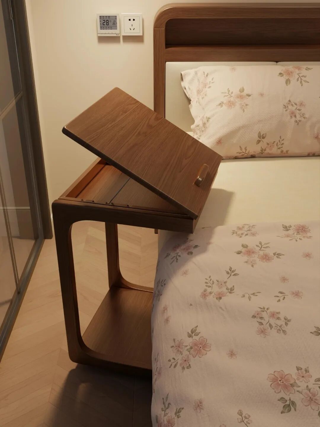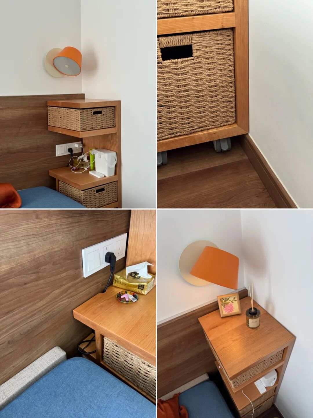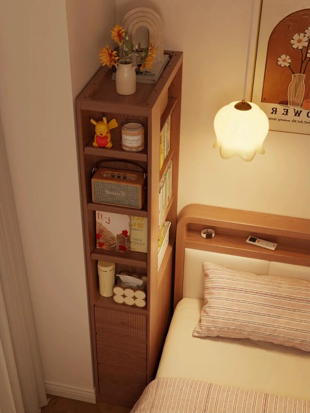 传统的床头柜,基本上就是个“摆设+杂物堆”,台面堆得乱七八糟,抽屉里面的东西一年到头也用不上几次,床和柜子之间的缝隙全是灰。