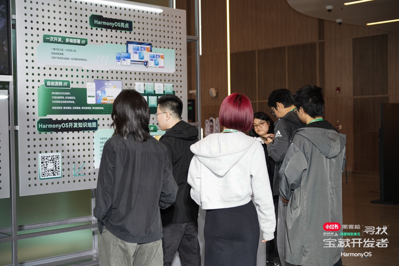 首届小红书黑客松巅峰赛现场,最热闹的展位之一,是鸿蒙的展位。