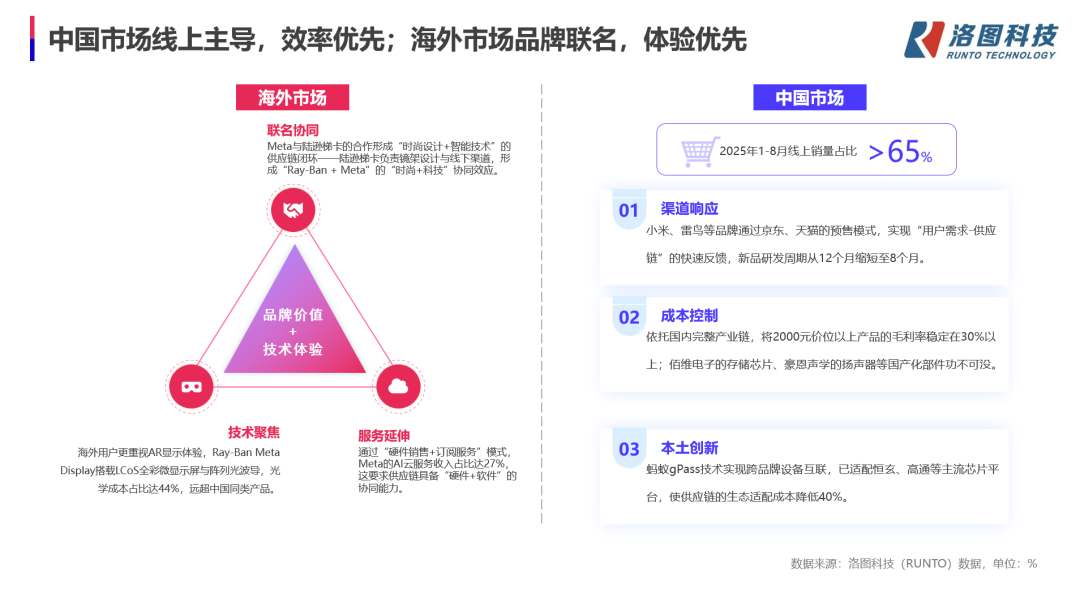 海外AI眼镜市场以“品牌联名+线下体验”为主,其中Ray-Ban Meta占据72%的物量。