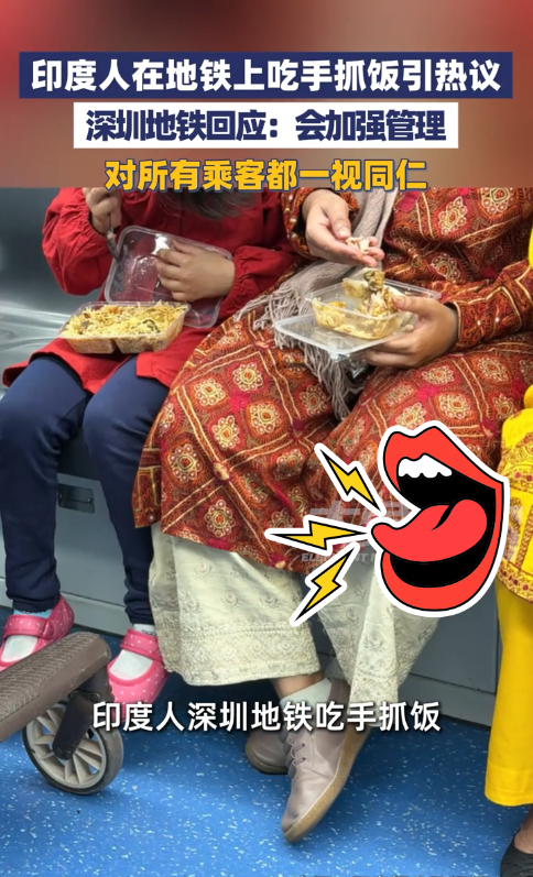 2025年10月25日,在广东深圳地铁上就出现了让其他乘客不可思议的一幕,地铁上一对印度母女竟然在大庭广众之下吃起了手抓饭。