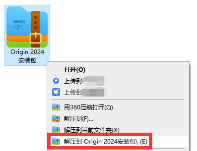 安装步骤:1、得到压缩包之后,鼠标右键解压,点击【解压到Origin 2024安装包】。