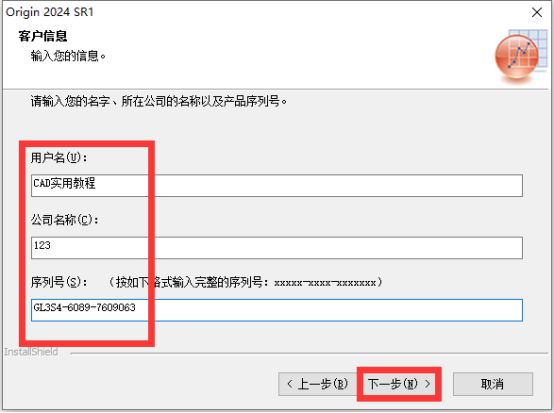 7、输入用户名和名称,输入序列号【GL3S4-6089-7609063】,然后点击【下一步】。
