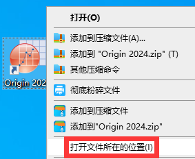 21、点击电脑桌面的【Origin 2024】软件,鼠标右键,选择【打开文件所在的位置】。